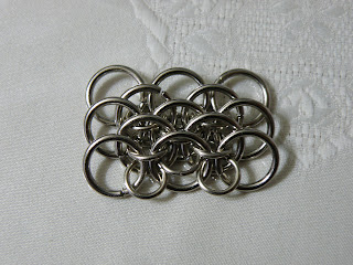 La grandotas son las argollas de 8mm que usé para mi cota de malla, y la pequeñita es la recién tejida.